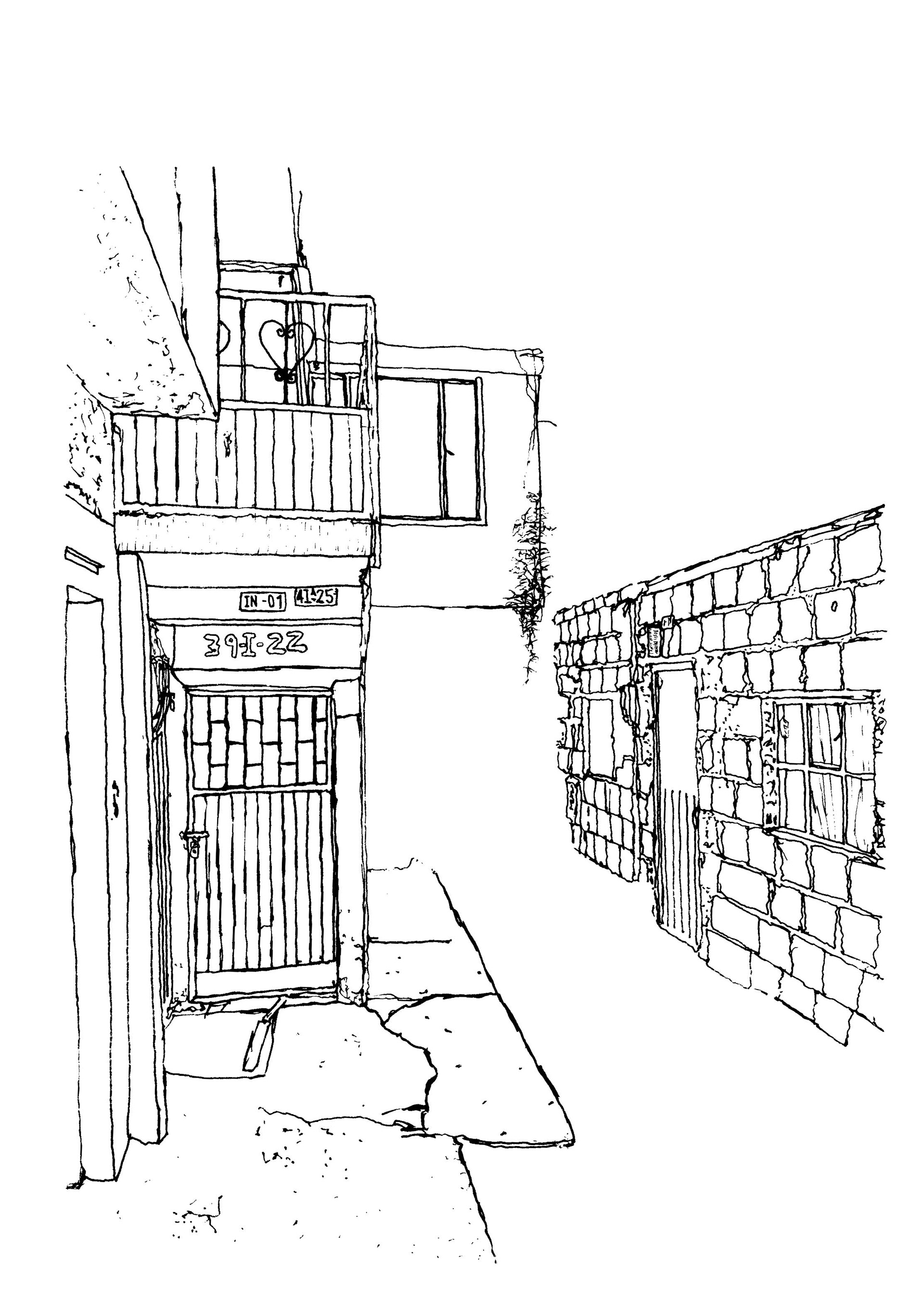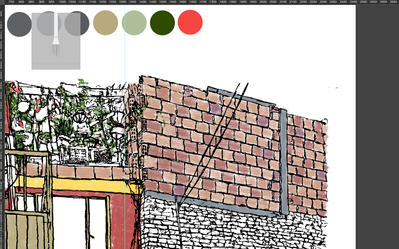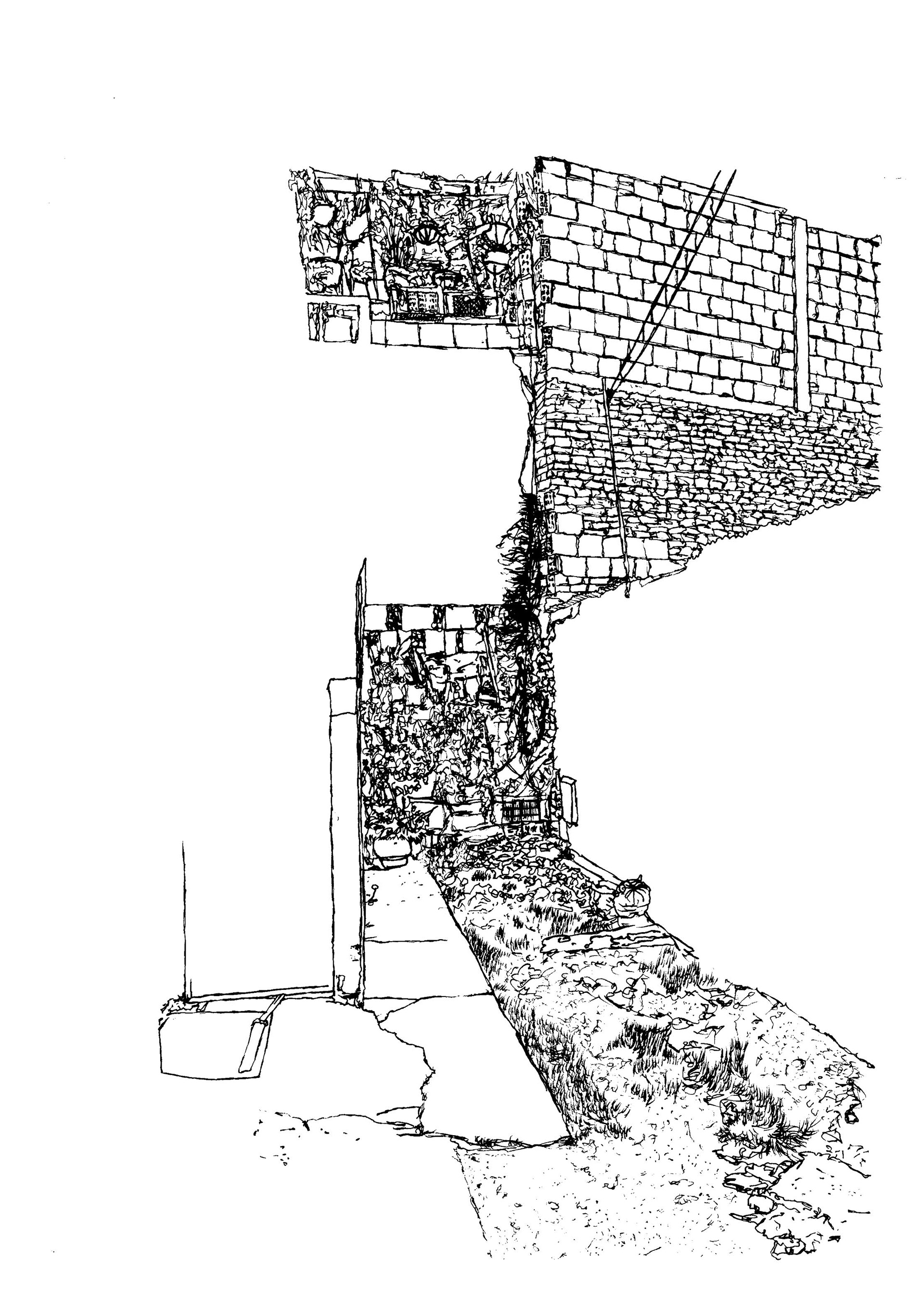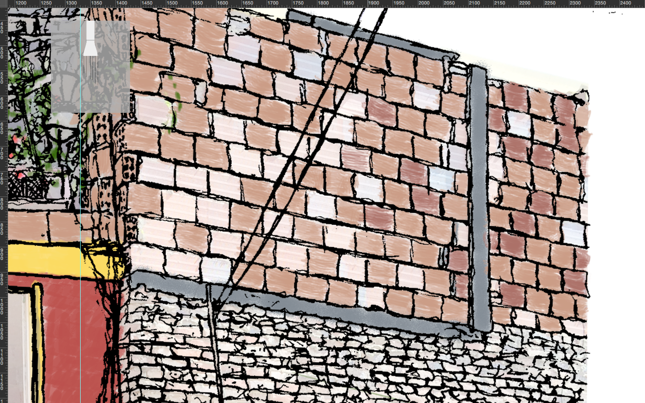 A ver complex line-tracing over a printed own photograph of an old house in Colombia.