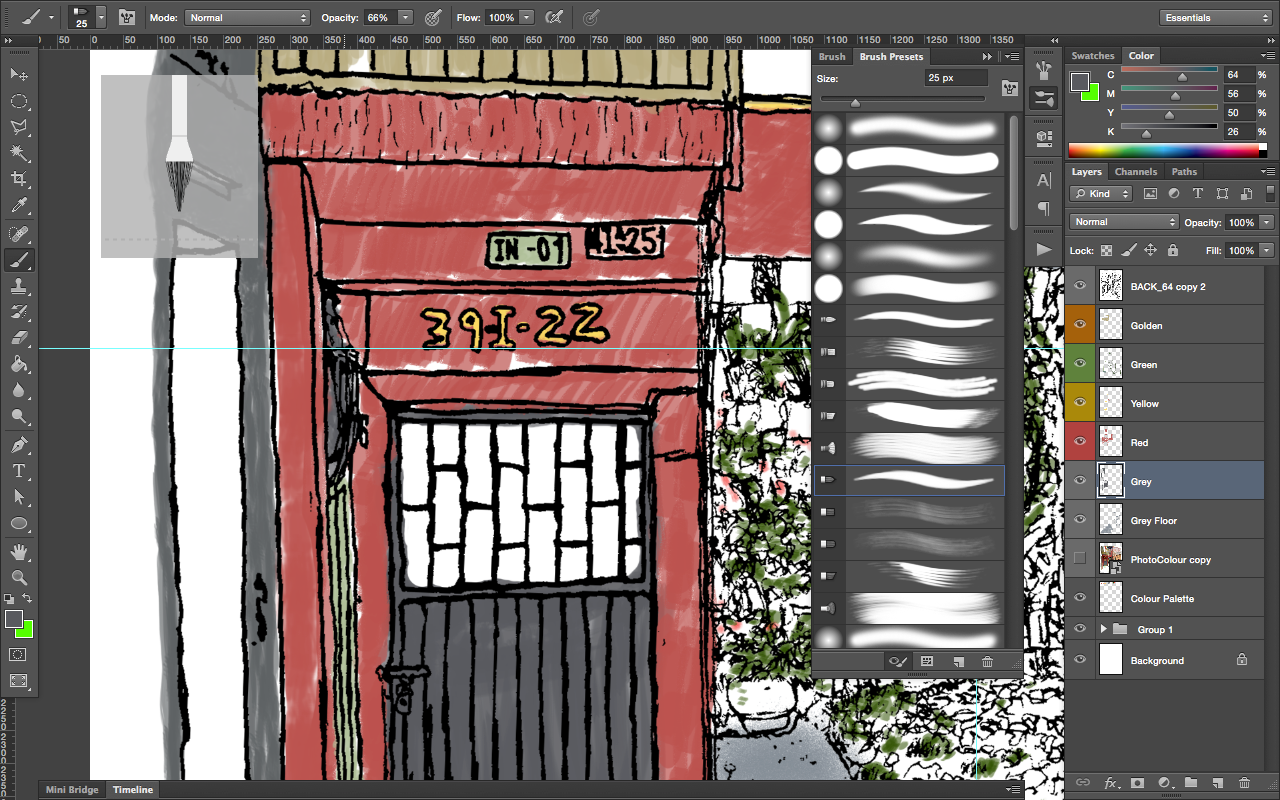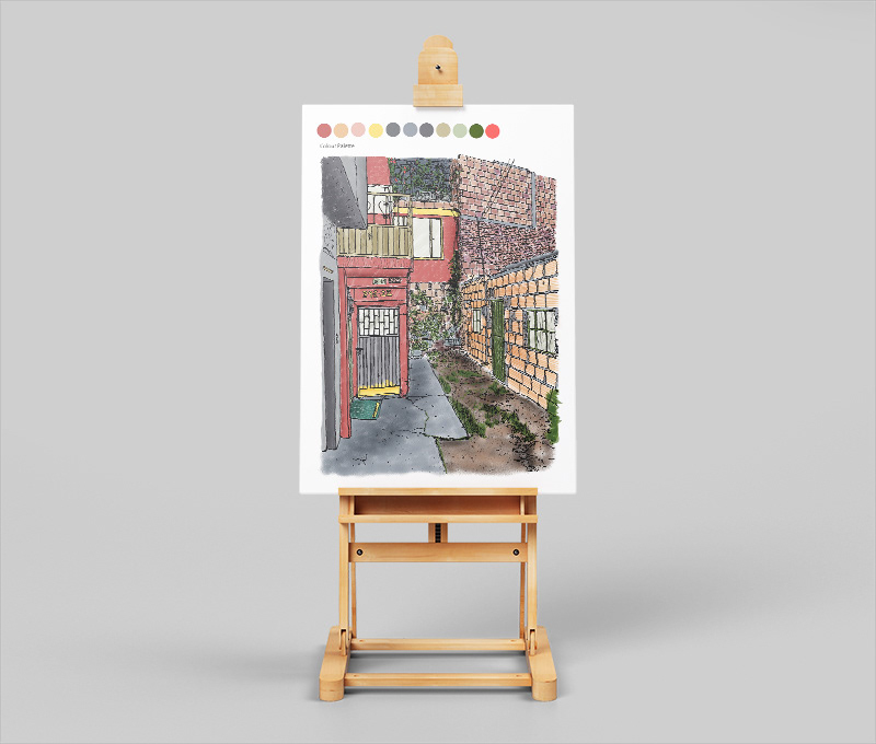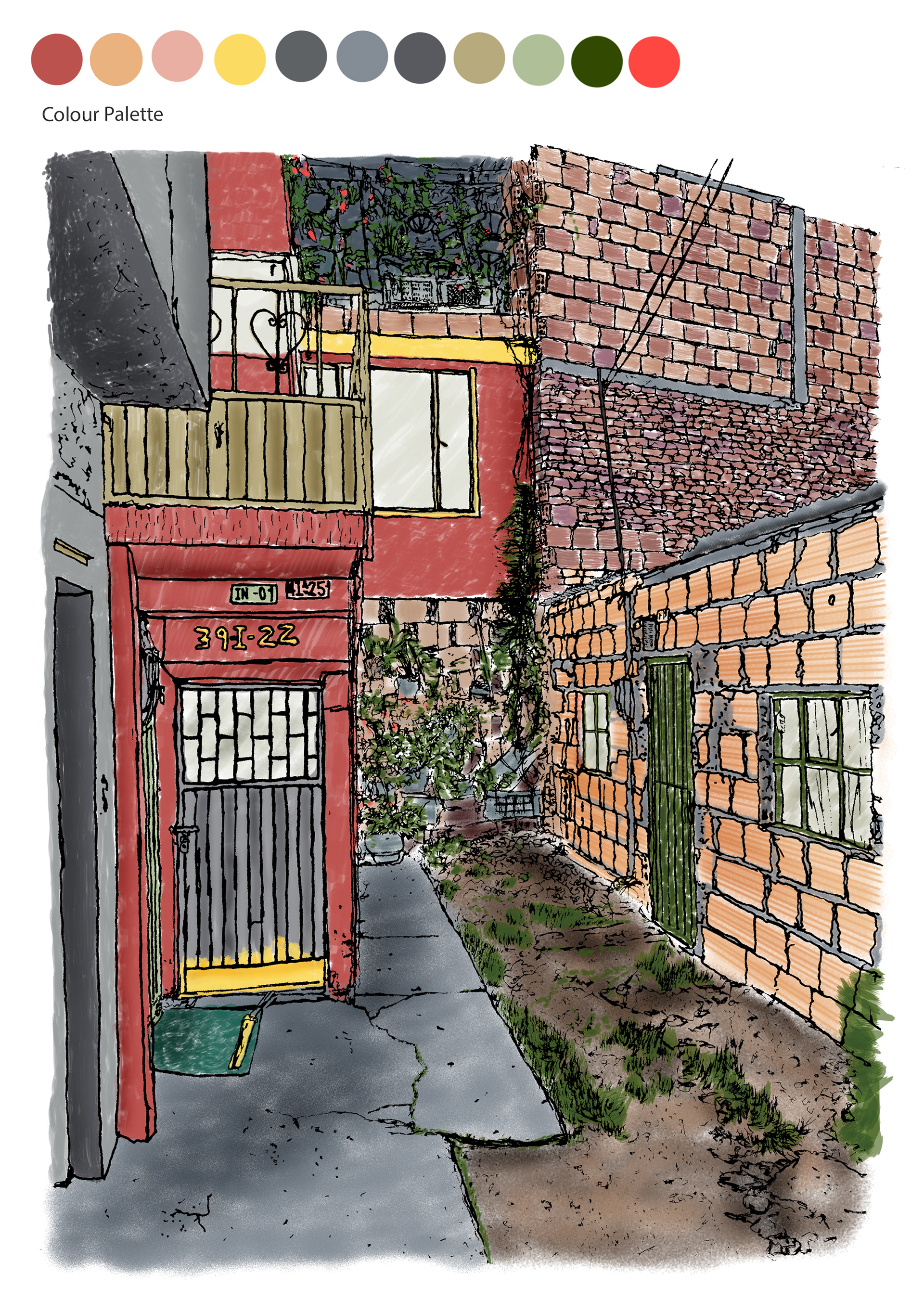 Just the classic: Printing the photo in A4, then line trace all the details, scan it in two parts and then color it, add some color using Adobe Photoshop and some light & shadow effects and final output for digital and print submission. It took me about 2 months.
