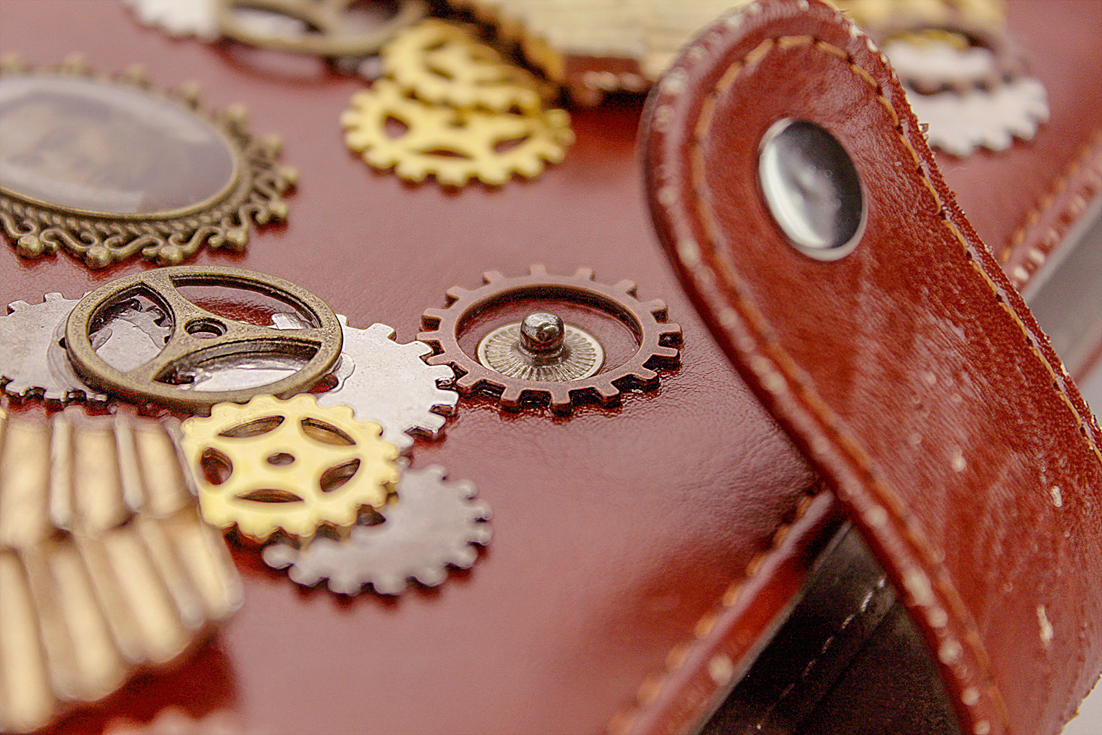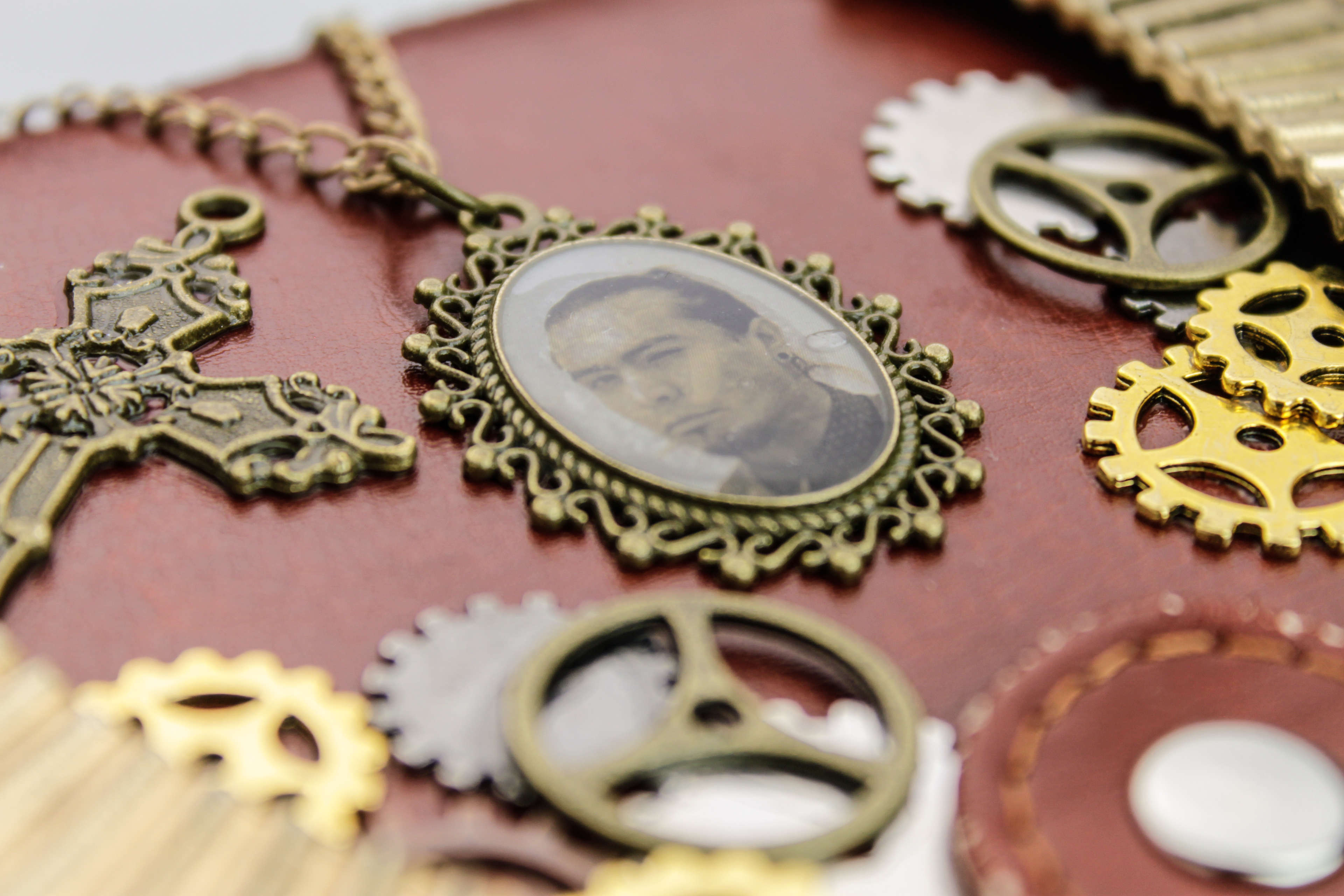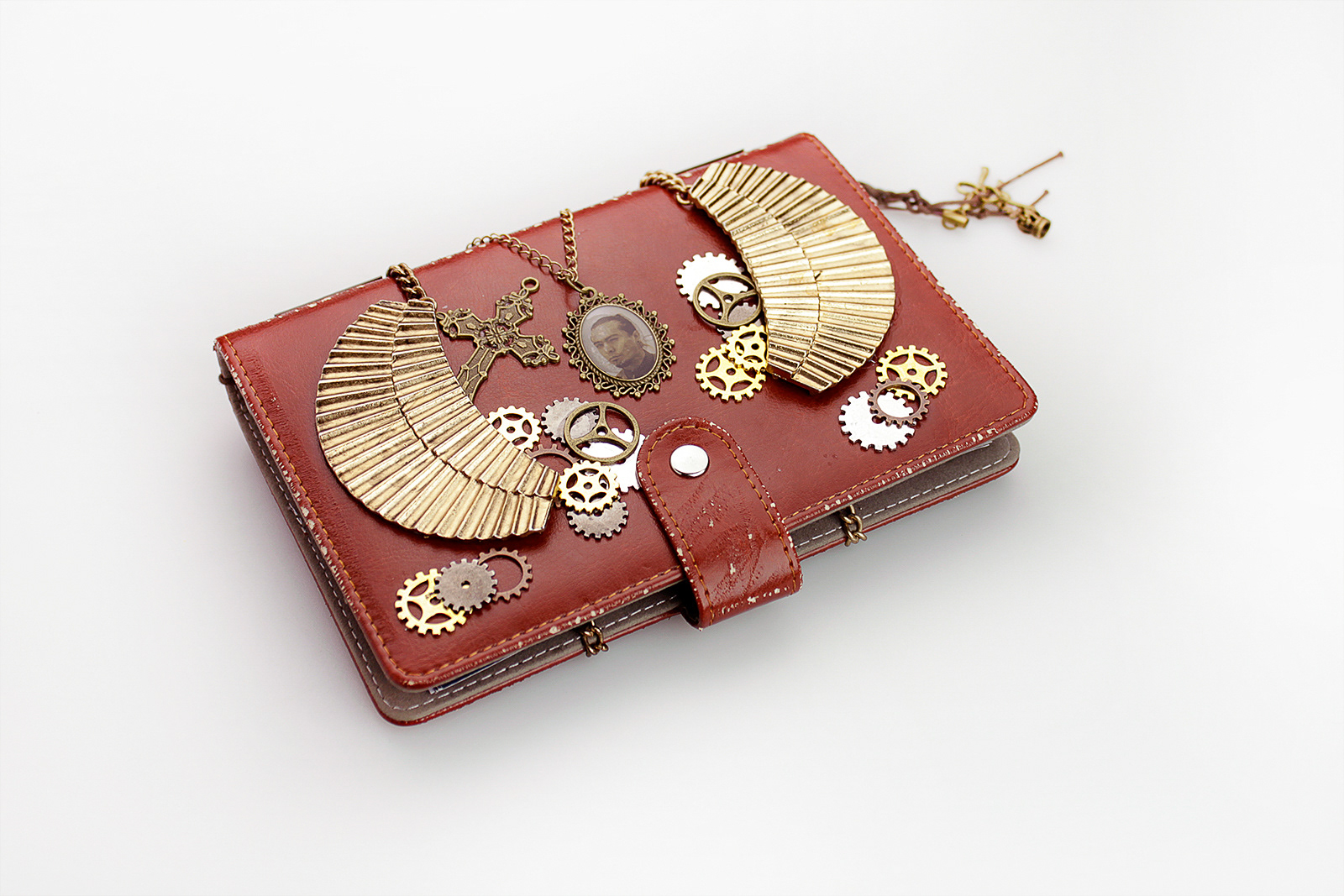 All the photos are my own as well as all the retouch, montage, book steampunk decoration, illustrations, etc. This project that took a lot of work to get it finish in two months. I wish I had a bigger budget for it to be able to use a different book and different decorations or even a better paper with some finishes, but as a student I needed to be resourceful and work with what I got. I was just thinking I was designing for the most stingy person in the world.