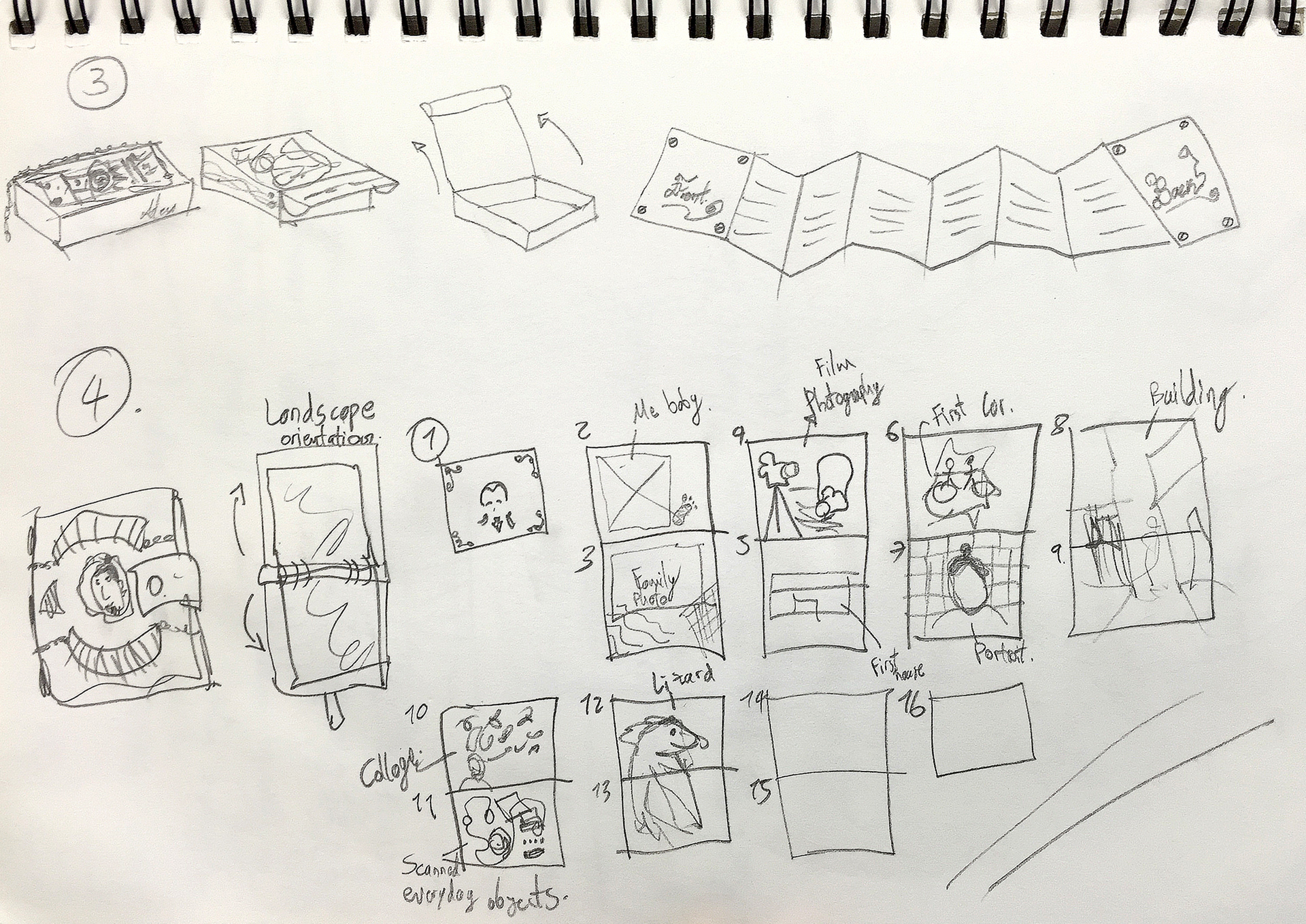 These are the final sketches that helped me planning before spending too much time designing for the 16 pages the MeBook.
