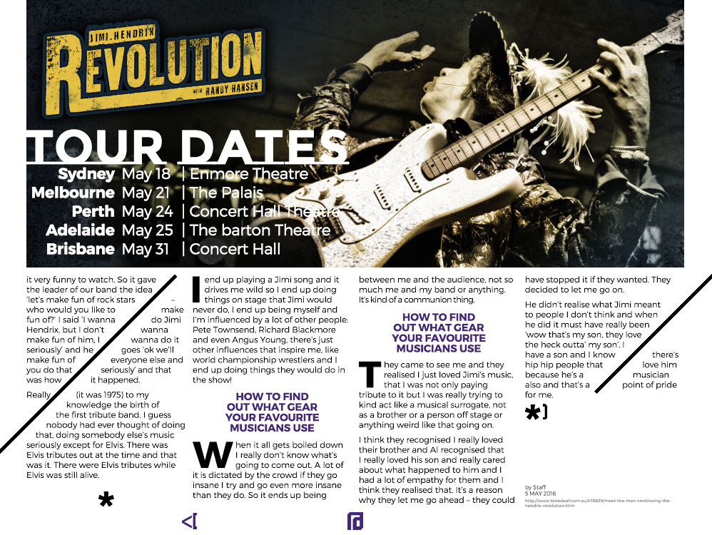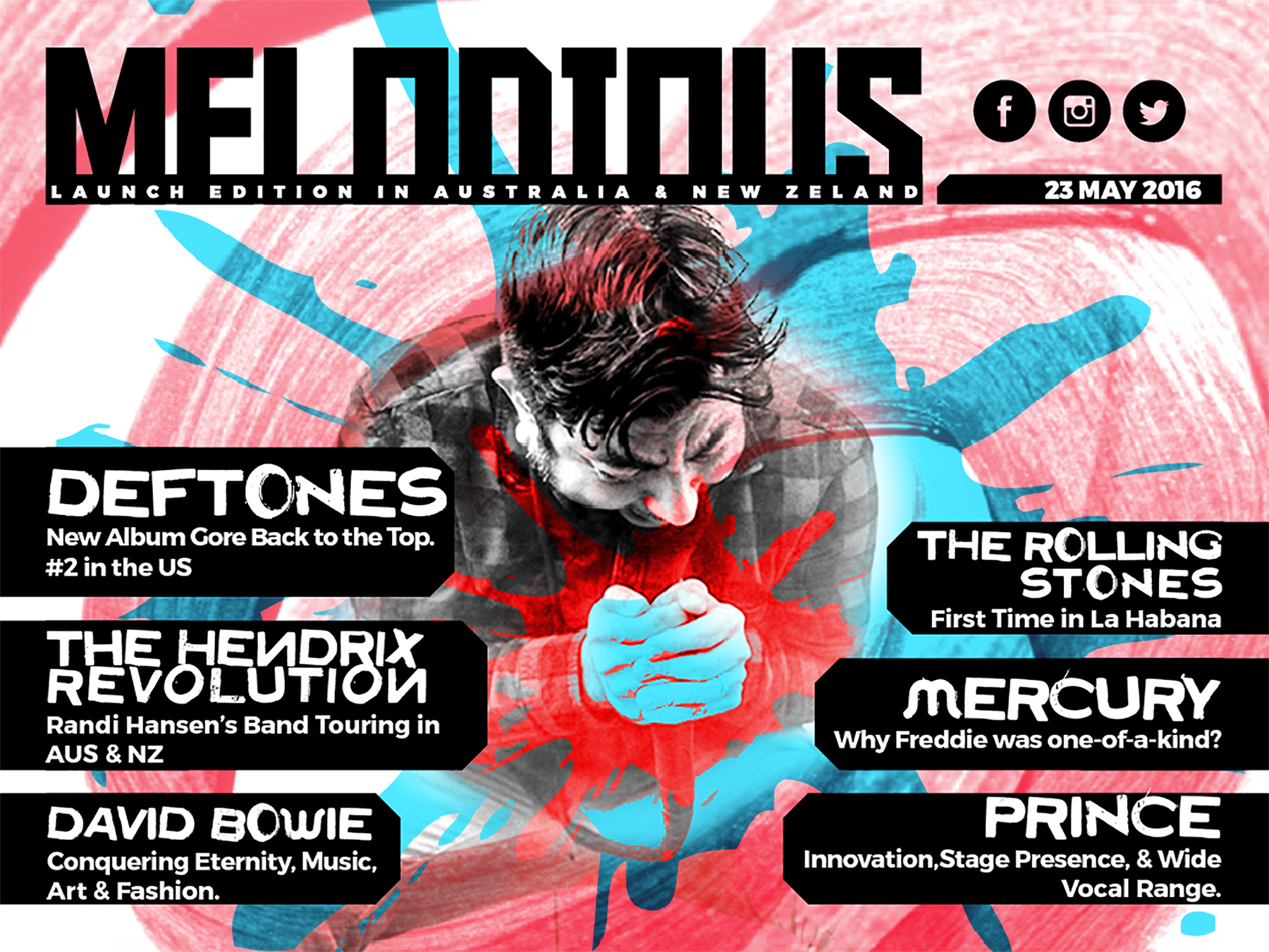 The cover featured Chino Moreno with a street and grunge aesthetic. The content page honored Prince with a unique color blend effect. The layout was clean, with full-bleed images and bold, diagonal text breaks, capturing the rebellious spirit of the music.