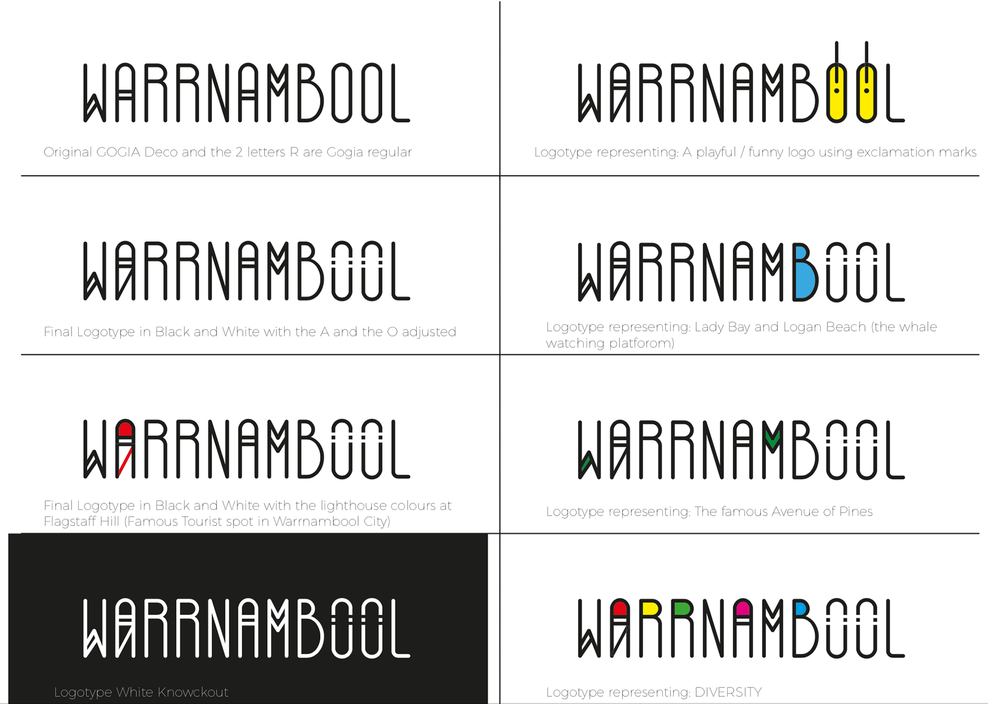 The logo concept drew inspiration from the indigenous name "Warrnambool," which refers to the area's geographical features and historical significance. The design incorporated a lighthouse, symbolizing the town's coastal location and guiding presence. The visual identity was developed to appeal to international visitors and investors, featuring a modern, cohesive look.