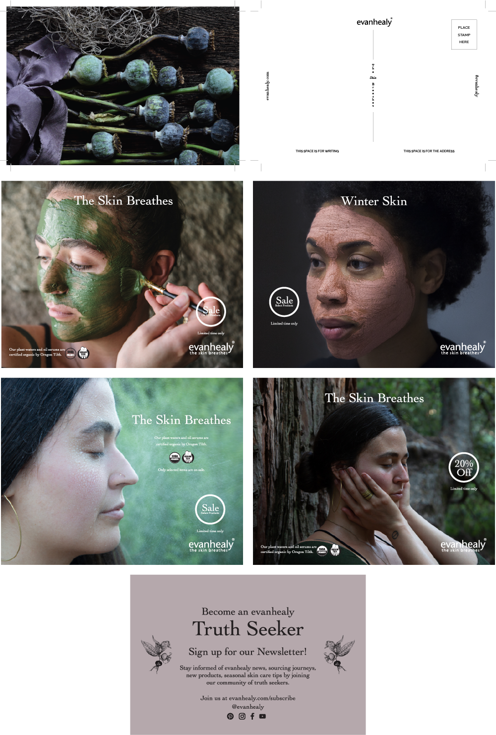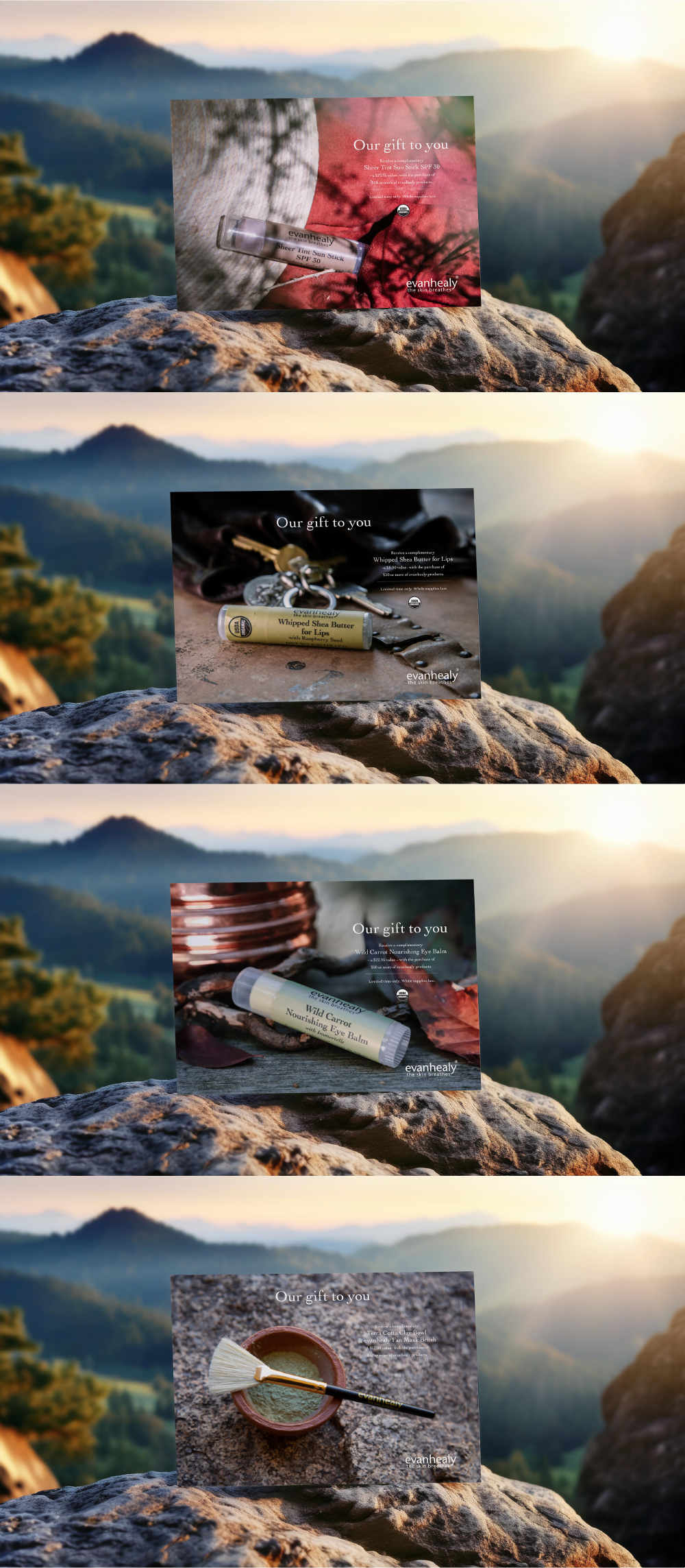 A set of in-store posters was designed to promote the new product line across retail environments. The visuals maintained evanhealy’s handcrafted, organic aesthetic while remaining clear and effective at point of sale.