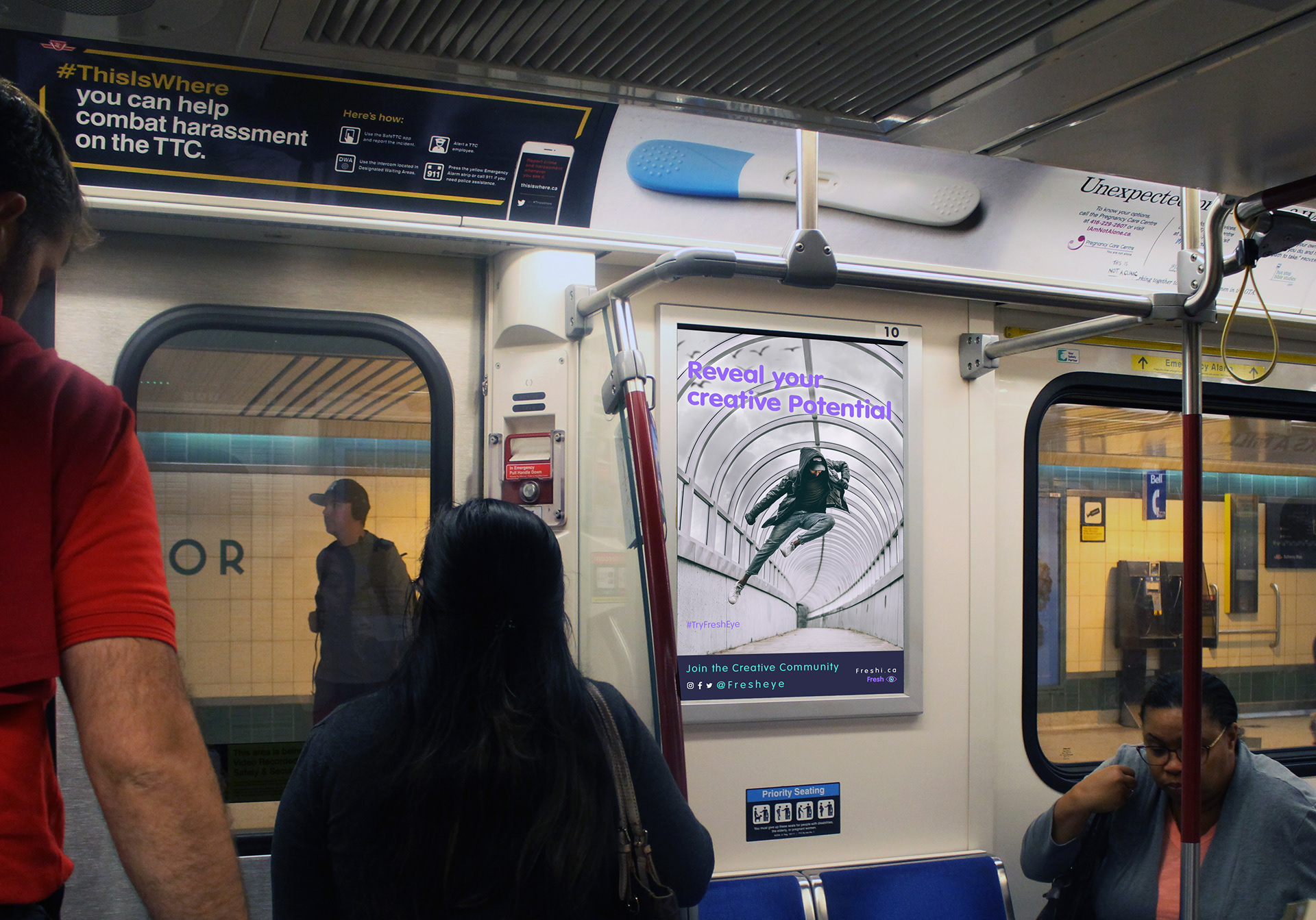 This poster is a key element of a broader campaign across multiple platforms. We designed additional ads for Toronto’s public transport and social media, maintaining a unified visual style throughout.