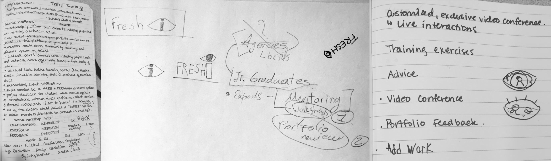 The logo for FreshEye symbolizes the value of new perspectives on creative work. By integrating an eye icon, we emphasized the importance of fresh insights and mentorship in the design process.
