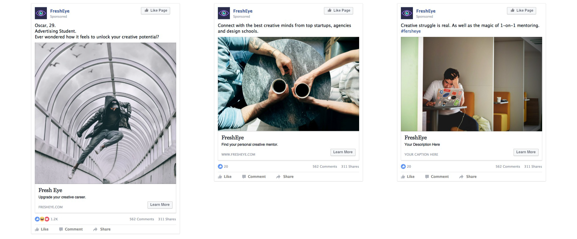 We also developed 3 social media ad concepts focused on creative struggles, building connections, and the freedom of mentorship.